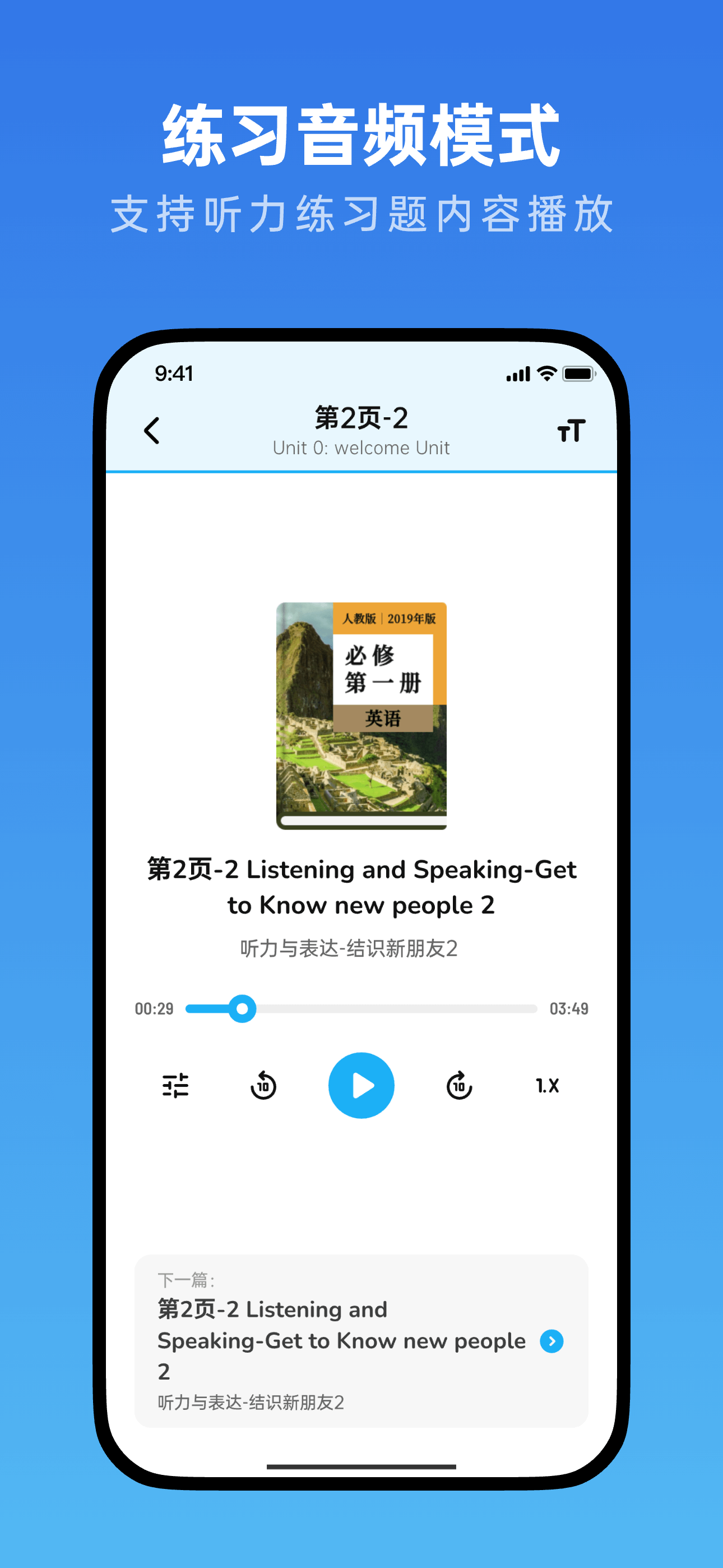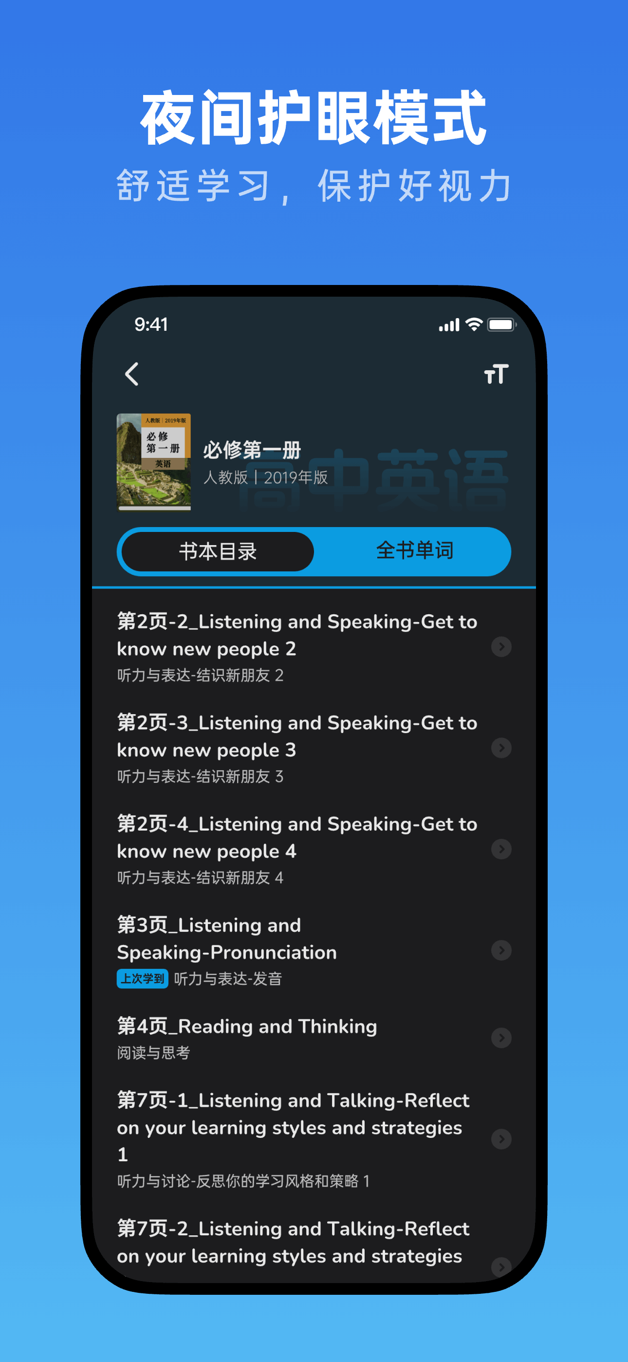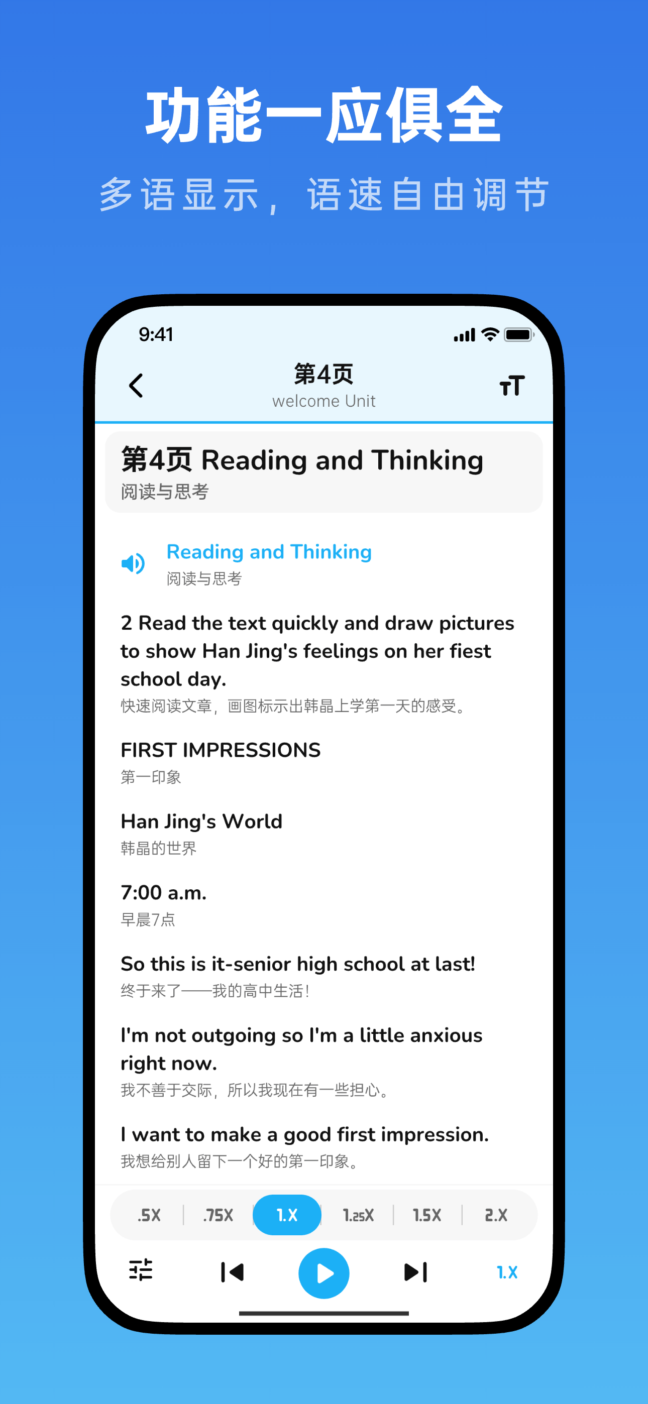 我们的应用是专为高中生打造的高效英语学习助手,完美同步各版本高中英语课本点读,提供课文和单词的中英翻译,助你轻松掌握英语。